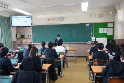 総合の時間を撮影。SDGsについて各自がまとめたことを発表していました。