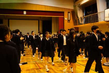 3年生の退場です。全校生徒が体育館にそろうのも、今日が最後です。