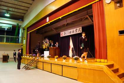 本日第75回卒業式を挙行いたしました。ご多忙の中ご臨席いただきました来賓の皆様、保護者の皆様には感謝申し上げます。