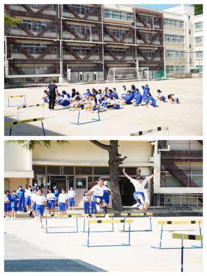 体育の授業です。女子のハードルを撮影しました。