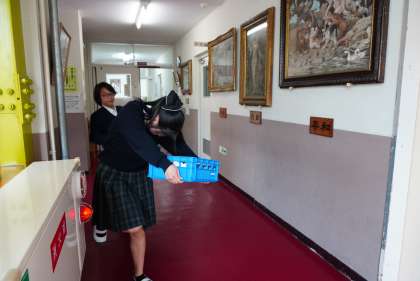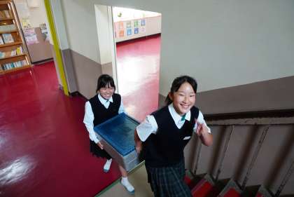 廊下で会った給食係さんを撮影。今日もありがとう。
