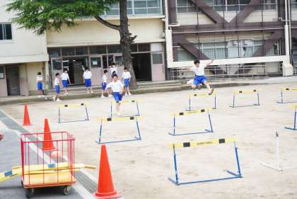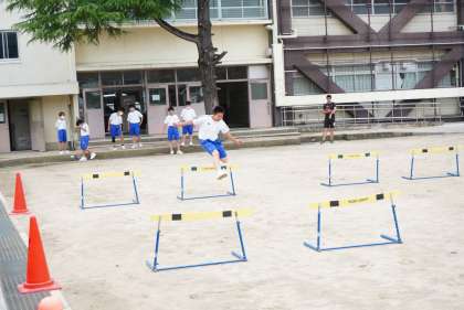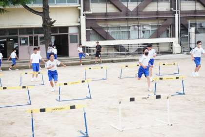 男子はハードル走にチャレンジです。