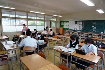 8時前の様子です。多くの1年生が朝の学習を行っていました。