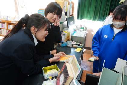 学校図書館で撮影。