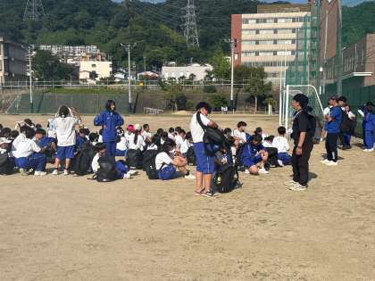 予定より遅れていますが、学校まで帰って来ています。 全クラス揃って、解散式となります。