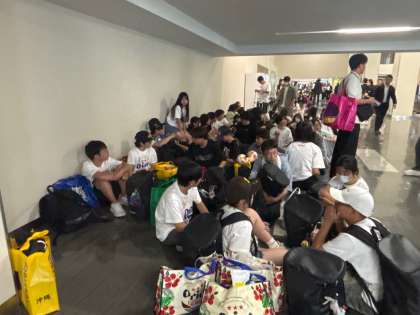 飛行機は予定通りの到着になりました。 荷物を取ったらバスへと移動します。