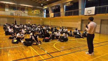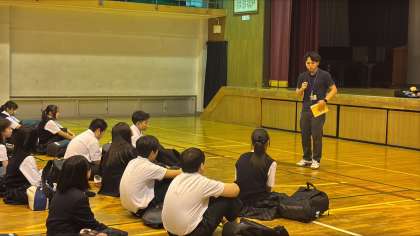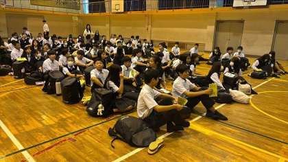 当日の諸注意に加えて、カヤック体験時の隊形練習などを確認しました。