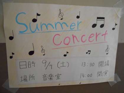 来る9月7日(土)午後2時から本校音楽室にて吹奏楽部のサマーコンサートが開催されます。多数のお越しをお待ちしております。