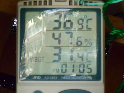 WBGT指数が、31.4度。「運動は原則禁止」との警戒領域です。