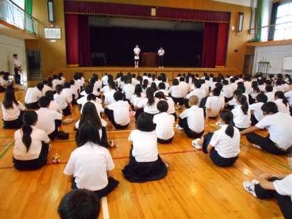 菊葉会役員、風紀委員会からの連絡。野球部の表彰。生徒指導からのお話し。校長先生からのお話しがありました。