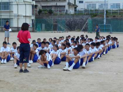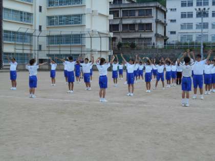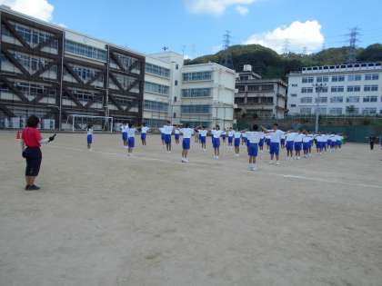 体育大会に向けた学年練習です。ラジオ体操の練習などを行いました。