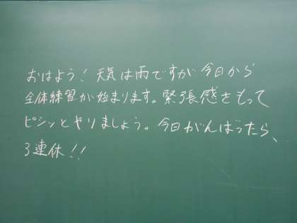 9月13日(金)朝。ある教室の黒板です。