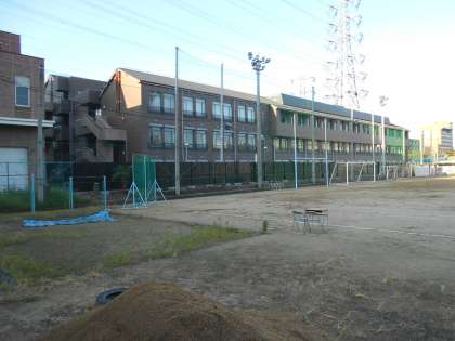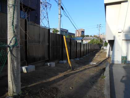 グランド南側の大阪桐蔭高校とあいだにコンクリートブロックの塀がありました。これを完全撤去し、あたらしくスチール製の茶色のフェンスを設置しました。