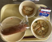 今日の給食は、黒糖ベビーパン・ちゃんぽん・揚げギョーザ・牛乳でした。給食の時間に...