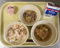 今日の給食は、やきめし・もずくスープ・ぶりキャベカツ・牛乳でした。ぶりキャベカツ...
