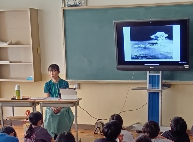 10日から広島へ平和学習を兼ねて修学旅行に行く6年生は、事前学習として被爆体験伝承者の方から生のお話を聞きました。