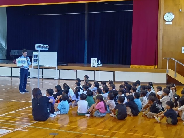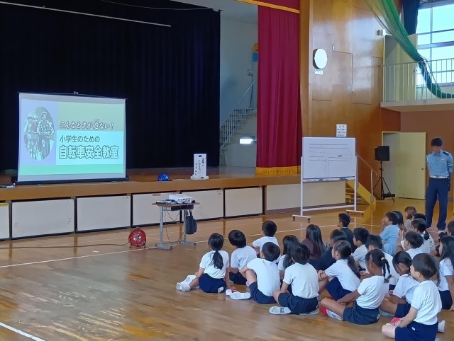 今日は1年生と4年生の児童が四条畷警察署の方から『交通安全教室』として安全指導を受けました。信号のある横断歩道を正しい方法でわたること。自転車は歩行者とは違って車であることを知り、それに合ったルールを守って乗ること。などをご指導いただきました。ありがとうございました。ほかの学年の人たちにも伝えて、みんなで交通安全を守りたいと思います!