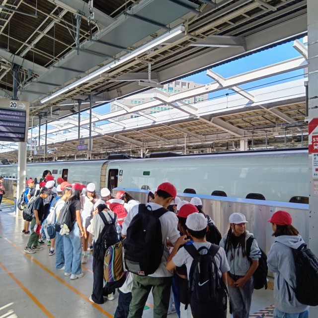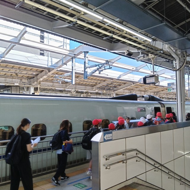 6年生は予定通りの新幹線に乗り、広島へ向かいます。