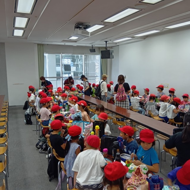 1年生はみんな元気に遊びを終えて、おいしいお弁当をいただきました!みんなとてもいい顔をしておいしそうに食べていました。これから予定より少し早いですが電車に乗って帰ります。