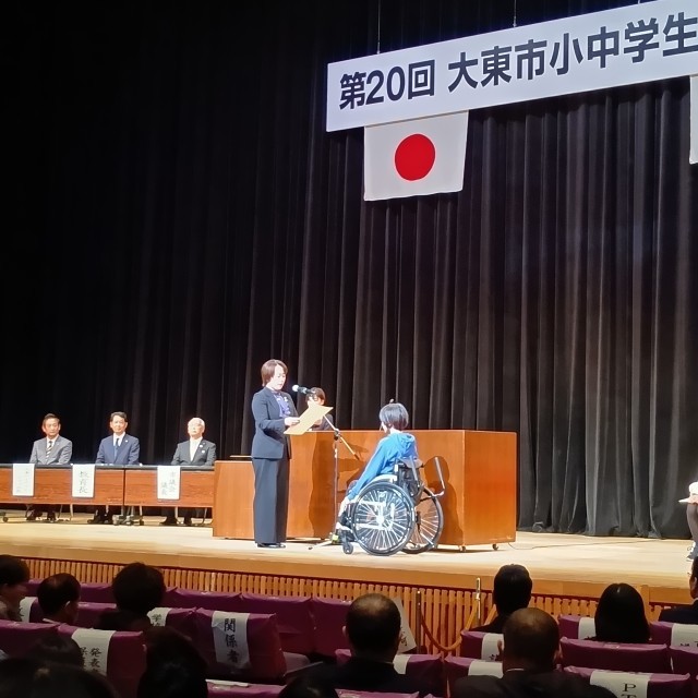 本日、サーティホールにて開催された『第20回 大東市小中学生弁論大会』に、本校からは6年の久保さんと5年の坂本さんが選出され、参加しました。