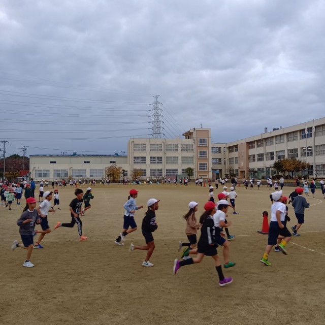 体力向上の一環で、「朝マラソン」の取り組みがはじまりました。3学年ずつ、”自分のペースで、一定の時間走り続けることができるようになる”という目標で取り組んでいます。