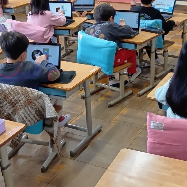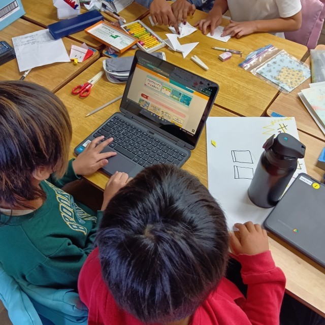 タブレットもその手段の一つとして活用できるように、まずは正しい使い方をおぼえ、友だちと”学習でつながる”ために日々文房具のように使い込んでいます。