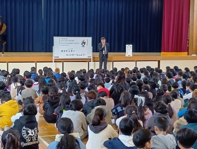 始業式では、2学期の終業式での話の続きの話をしました。1年のはじめの節目はめあてをつくる時です。去年自分が成長したように、今年1年何かにチャレンジを続けて成長する自分を想像し、その姿をめあてにしてみましょう。なりたい自分になるためにはどうしたらよいのでしょうか?それは、『自分を上手にコントロールすること』です。怠けたいとき、区切りがなかなかつけられないときなどに克てるように、上手に自分をコントロールできるように練習しましょう。それが上手にできるようになることが、やがてやってくる大切な瞬間(スポーツの試合や、入学試験など)のために役に立つのです。人それぞれでコントロールの仕方は違うかもしれませんから自分のコントロールの仕方は自分で見つけましょう。