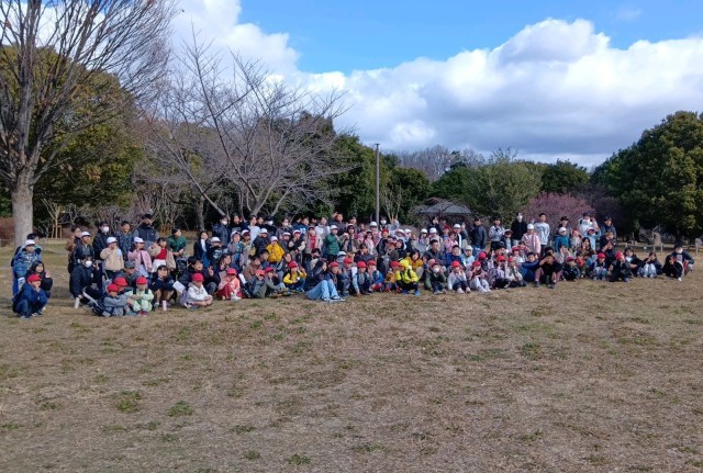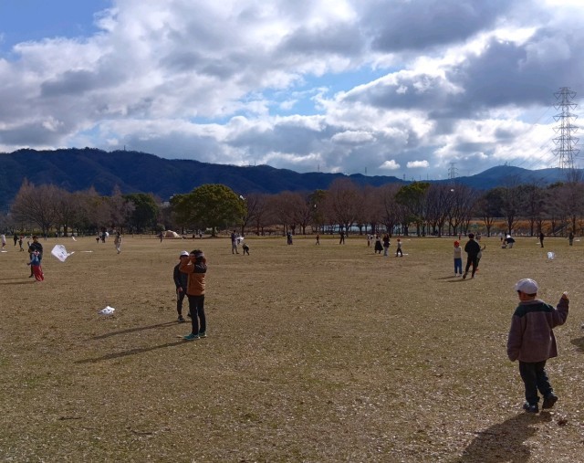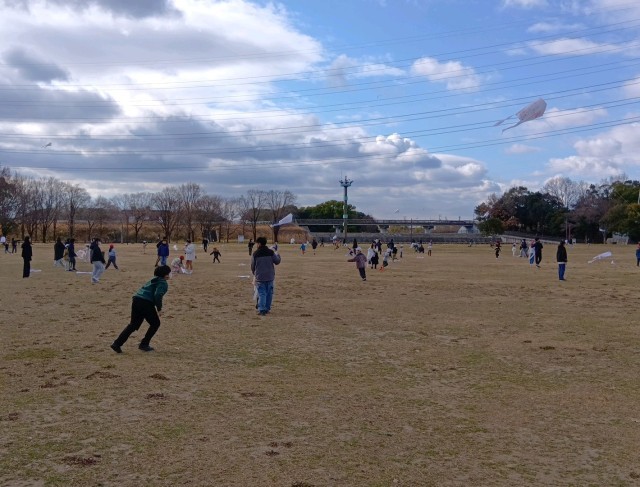 今日は1年生が6年生と一緒にたこあげをして遊びました。深北緑地の芝生広場はとても広く、思い切り凧を揚げるのにぴったりです。