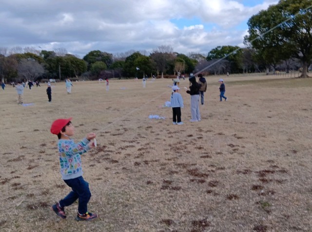 風は弱めでしたが、子どもたちの凧と夢を大空に舞い上げてくれていました。6年生も優しく揚げ方を教えてくれたり、もつれた糸を一生懸命にほぐしてくれたりと、微笑ましい場面が満載の凧あげ遊びでした。