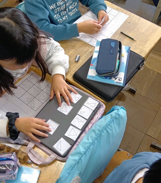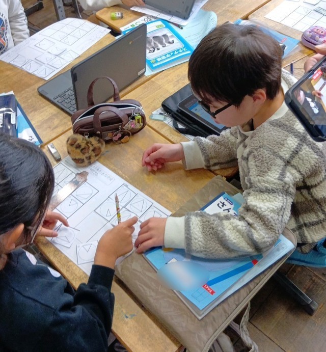 先週の金曜日に教員で授業研究会をもちました。3年生の算数の授業を題材にして、『つながり、みがきあう授業』のつくり方を研究しました。三角形を分けることを通じて子どもたちは必死に考え、規則性を見つけ出す学習に取り組みました。そのあと、教員も授業をふりかえりながら、改善点や明日からの授業に活かすことのできる点、『学ぶ』ということについてなどを考え、教員同士で学び合いました。