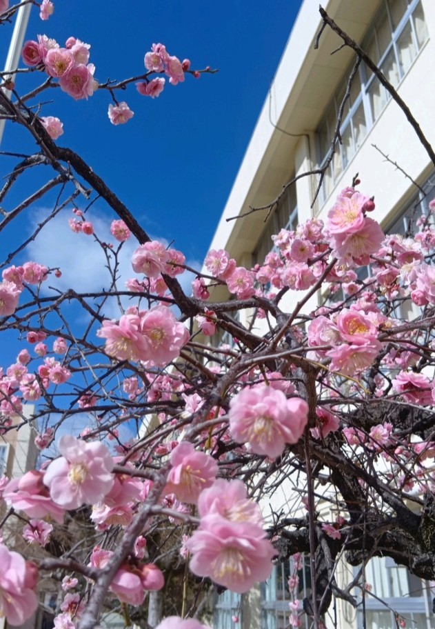 学校では運動場側に『しだれ梅』も満開状態です。校内のあちらこちらでたくさんの花たちが春の訪れをしらせてくれています。