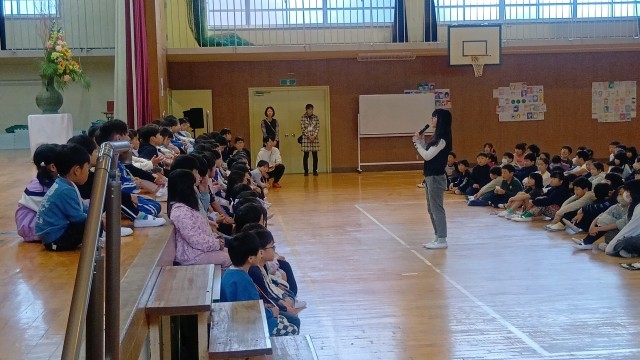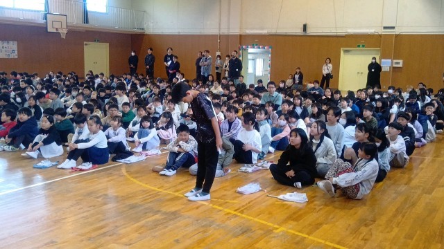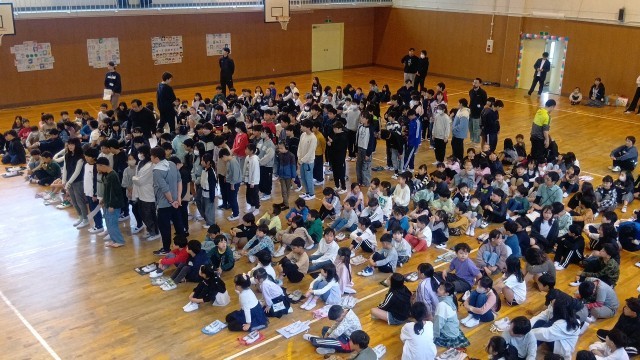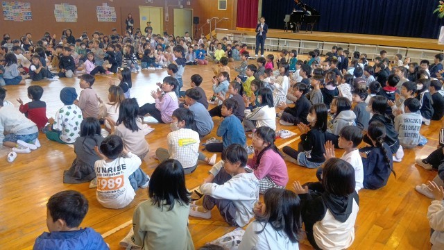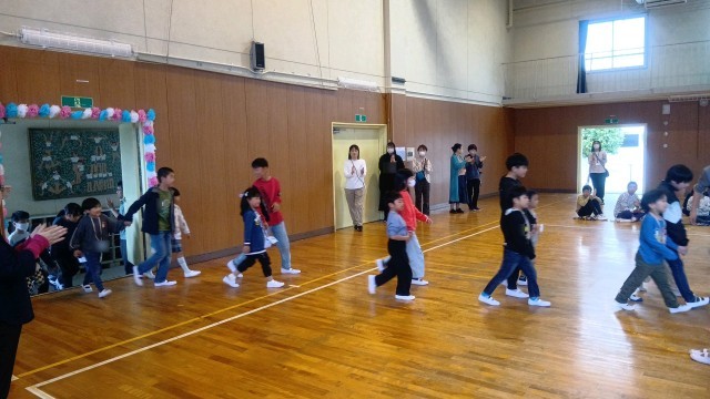 各学年からの呼びかけや6年生からの手作りメダルをマラってご満悦の一年生。全校児童で歌った校歌は今まで私が在籍したどの学校の校歌より素敵な歌声が響いていました。