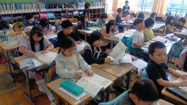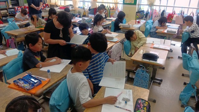算数の時間、2桁×1桁の計算方法を考えていました。まず個人で考える時間、その後伝え合う時間の構成。口に出して伝えることで互いの理解が深まります。