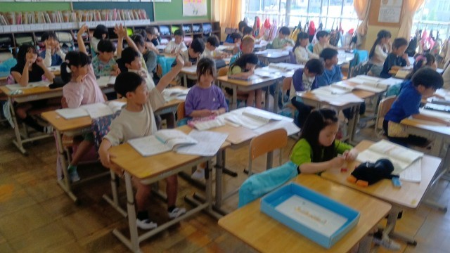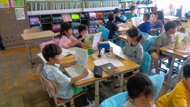 国語の時間、音読の練習をしていました。グループで段落ごとに明るい雰囲気で読んでいます。みんなとても上手でしたよ。