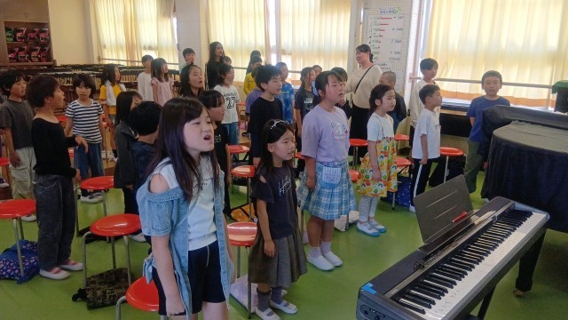 四条北小の子どもたちの歌声はとてもきれい。音楽室からはいつも美しい音が響いています。
