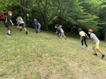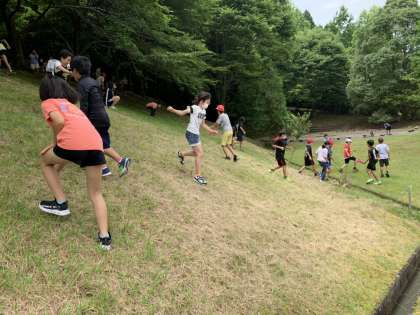 お弁当を食べた後は、斜面を駆け上がったり、転がったりして楽しみました。