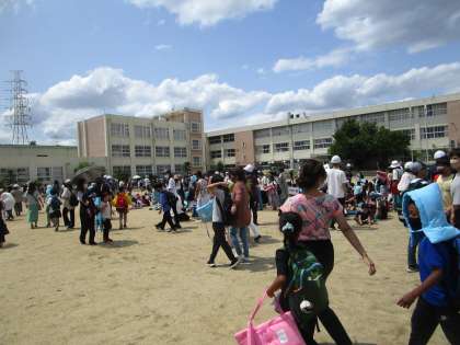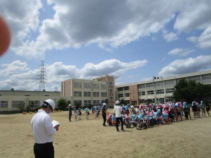 巨大地震を想定した避難訓練を実施し、迎えに来られた保護者の方にお子様を引き渡すというところまで行いました。保護者の皆様にはお忙しいところご協力いただきましてありがとうございました。