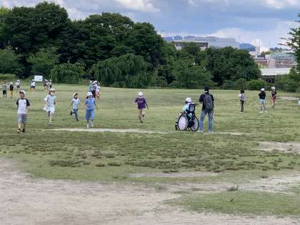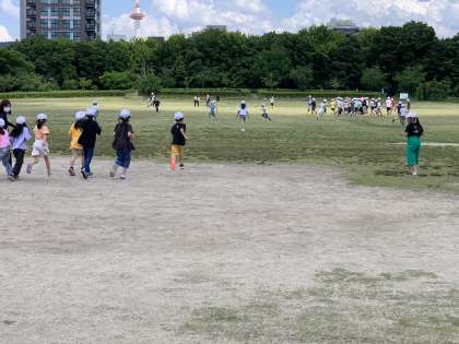 お弁当を済ませてまた少し見学した後、水族館前の広場で遊びました。3年生の子どもたちは、広い芝生広場で元気いっぱい走り回っていました。