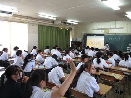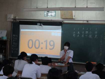 国語です。1年生もビブリオバトルをしていました。この時間はクラスのチャンプ本を決めていました。堂々とした発表でした。質問もしっかりしていました。