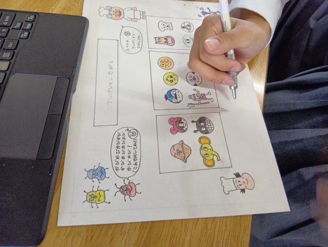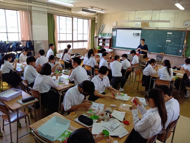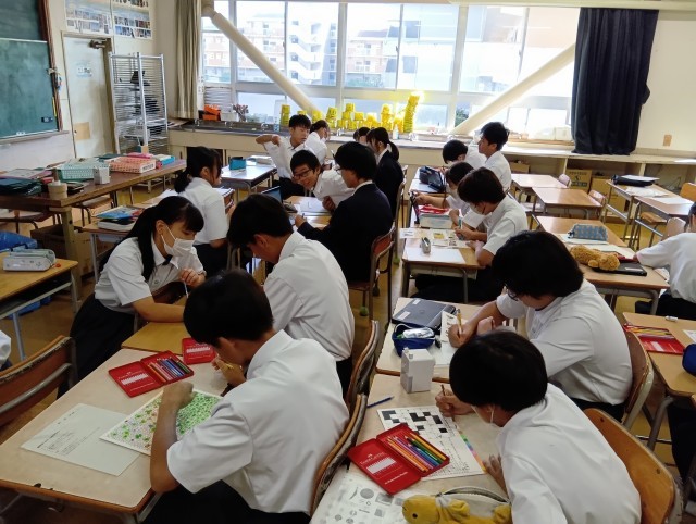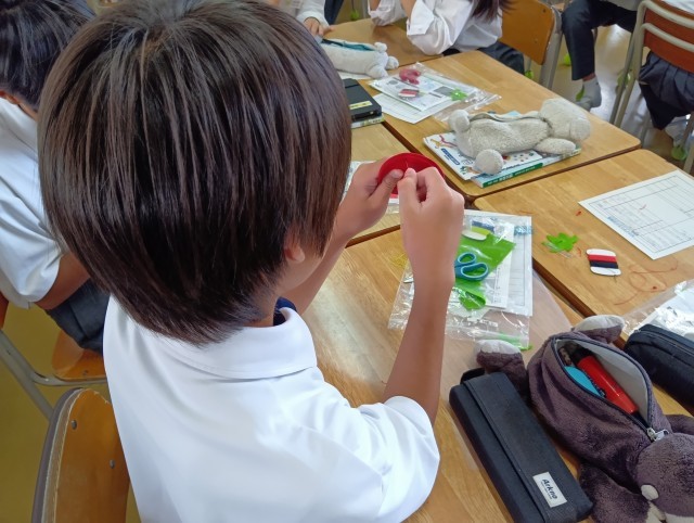 技術・家庭科・理科A・英語B・美術です。家庭科では、細かい裁縫を頑張っていました。