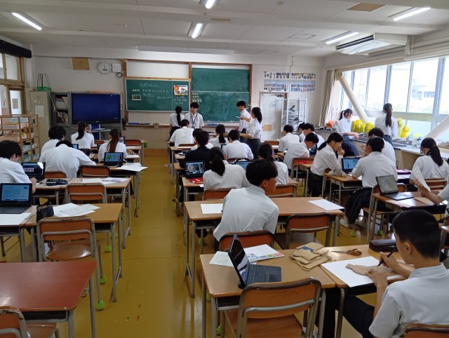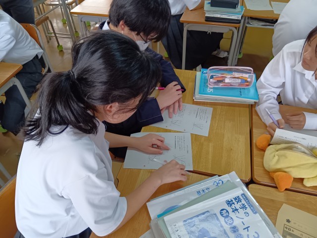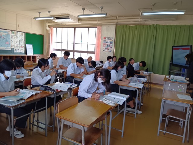 社会・英語・数学・美術です。学びあいが自然に生まれています。頑張っています。
