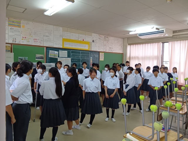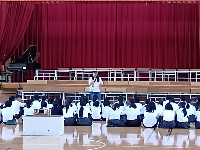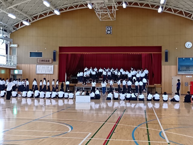 1年生の6時間目は、学年練習でした。パートごとに教室に分かれ練習をしたあとに、体育館であわせていました。初めての合唱コンクールまであと5日!