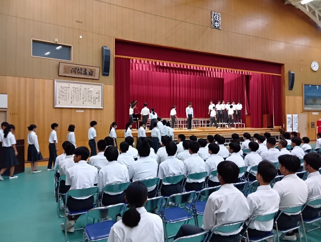 2年生のリハーサルの様子です。学年合唱も含め流れの確認をしていました。