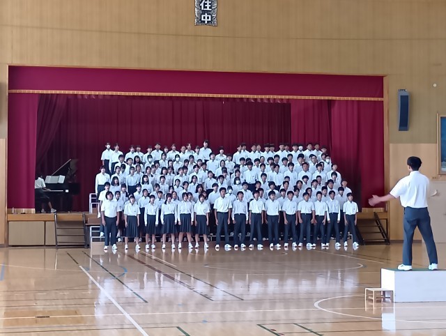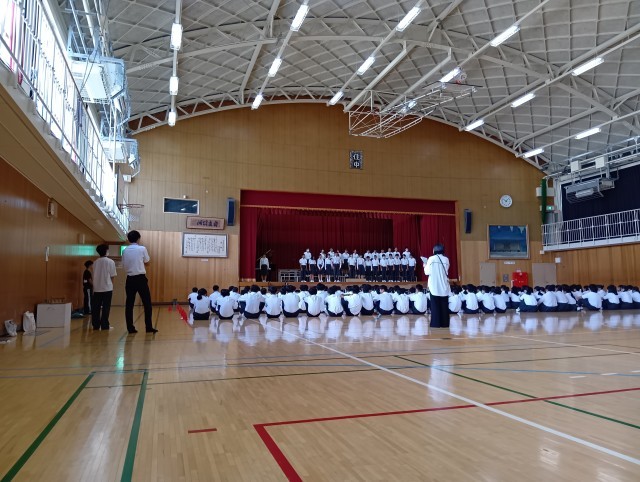 2年生の学年練習です。学年合唱の最後の練習をしていました。