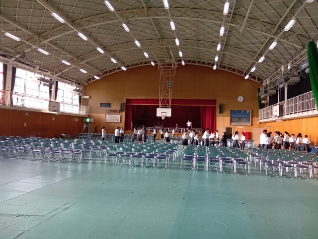 放課後の時間を使って、1年生が体育館の会場準備をしてくれました。