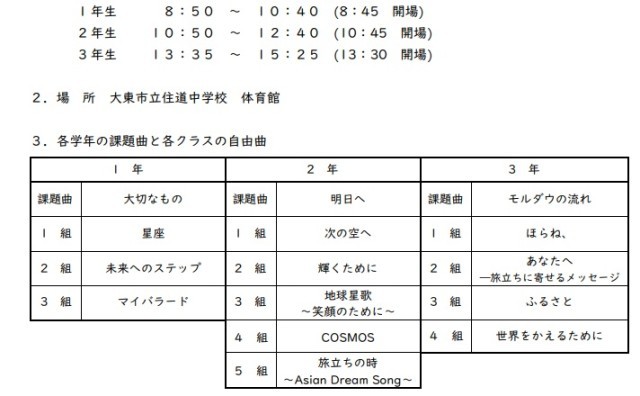 明日は、合唱コンクール本番です。すでに配布済みですが、連絡させていただきます。