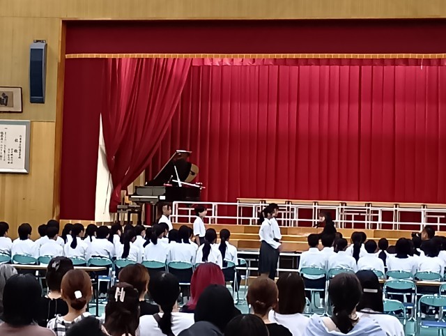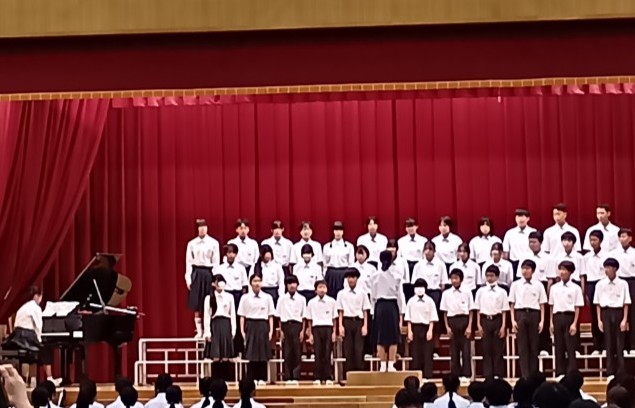1年生は初めての合唱コンクールでした。去年、アクセスプランで76期生のモルダウの流れを聴いた場所で、今回は、自分たちが合唱を行いました。緊張もある中でしたが、堂々とした歌声でした。態度も素晴らしかったです。