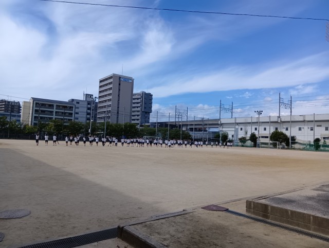 体育・英語・数学です。体育では、体育大会に向けての集団行動の練習をしていました。