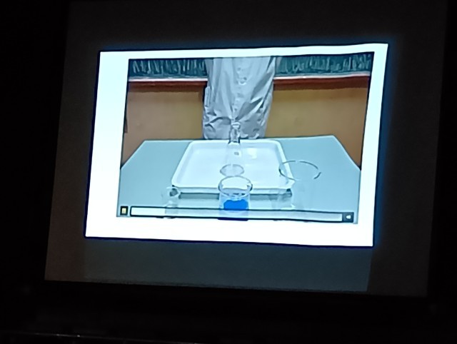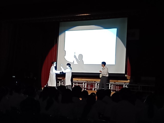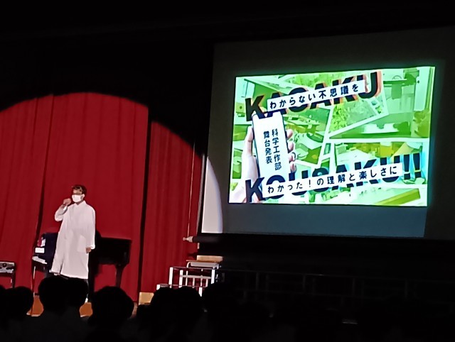 科学工作部です。実験の様子を、上手に寸劇をいれながらの発表でした。