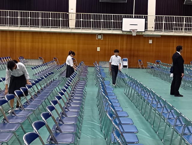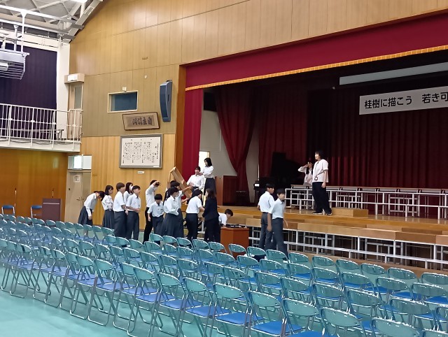 午前の部の終わりに、午後からの気持ちづくりなどの話を担当の先生がしてくださり、そのあと、文化祭運営委員さんが、午後の座席の準備をしてくれました。